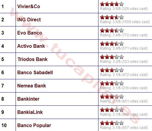 Descartando esta entidad, la lista sigue siendo casi como siempre, liderado por las entidades online: ING Direct, Evo Banco, Activo Bank y Bankialink.