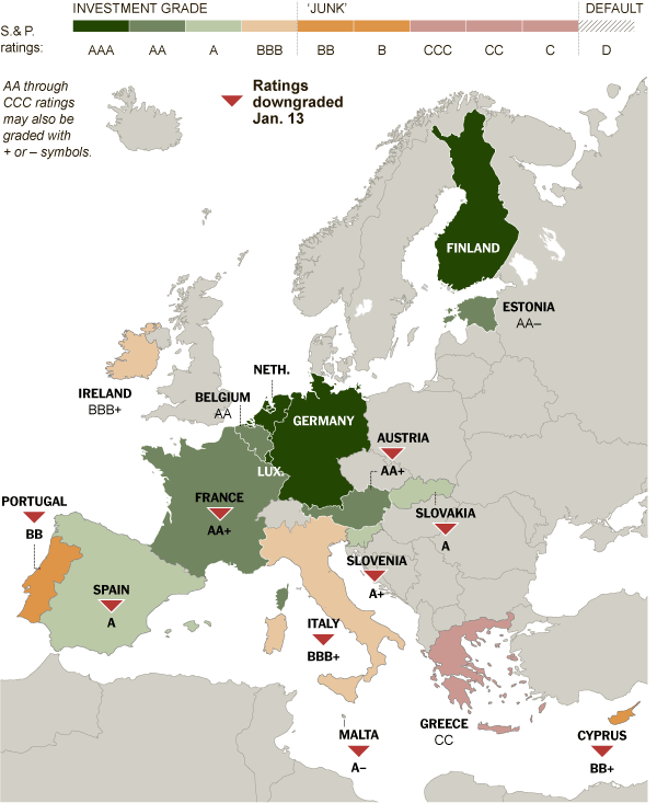 S&P rebaja la calificación crediticia de 8 países de la Eurozona: