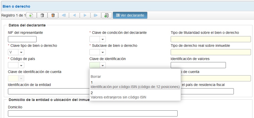 Para cada bien hay que rellenar una ficha, y que es la misma para los 3 tipos de bienes:
