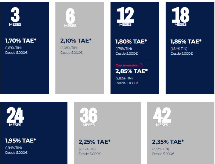 Es el producto más rentable, lanzado hace 2 semanas y que fue recortado en su tipo de interés desde el 2,8% TAE hasta el 2,6% TAE.