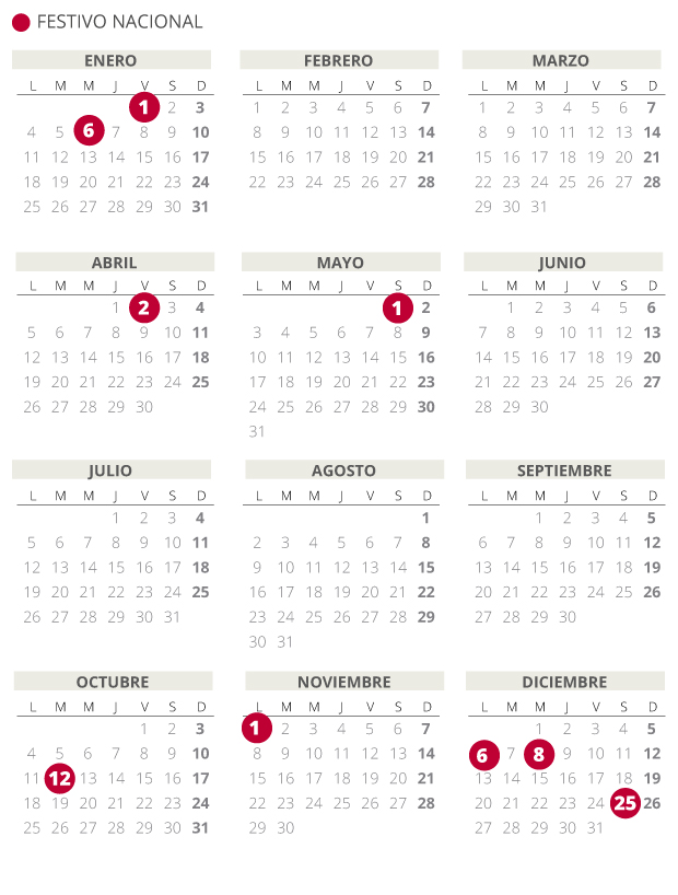 De esta forma, Habrá 4 festivo que serán en lunes o viernes, alargando los fines de semanas.