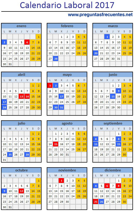 Hemos recogido los festivos nacionales y los días inhábiles aprobados por cada comunidad autónoma para conformar el calendario laboral de año 2017.