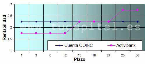 - Plazos de más de 24 meses: ActivoBank supera en 0,5% la rentabilidad de la cuenta COINC.