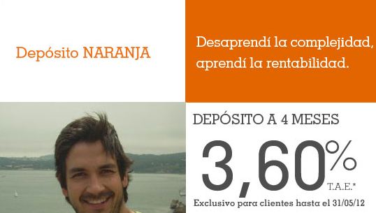 ING Direct sigue ofreciendo, a pesar de la nueva estrategia de Ibanesto, su depósito naranja al 3.6% TAE y a 4 meses de plazo para incremento de saldo.