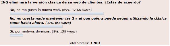 Y por último, hemos dicho algo de si la nueva web es buena o mala? (pero todo hay que decirlo, la opinión mayoritaria de la gente es que no les gustan), simplemente que le falta funcionalidades que la clásica sí que hace y hemos alegrado porque ING ha decidido no quitar la clásica hasta que al menos la nueva haga lo mismo que la vieja.