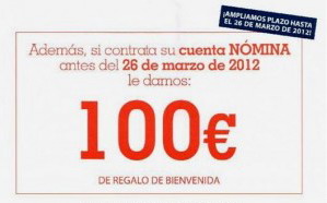 ING Direct regala en su campaña de captación de nóminas a sus clientes que lo domicilien en esta entidad 100 euros en efectivo.