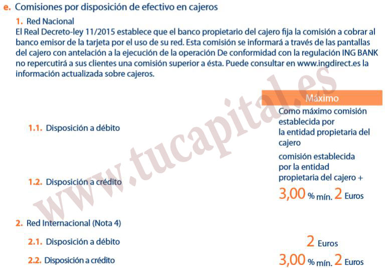 Y lo peor de todo es que no vais a saber cuando retiréis efectivo en los cajeros si os cobrarán comisión o no, porque según indica la ley, el cajero informará la comisión máxima que os puede cobrar, que es la comisión que cobra el propietario del cajero, pero como ING no especifica en qué cajeros te traslada esa comisión… pues te lo podrá cobrar o no.