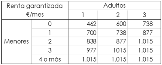Concretamente y dependiendo de la composición familiar (unidad de convivencia), desde un mínimo de 462€ hasta un máximo de 1.015€ al mes en 12 mensualidad.