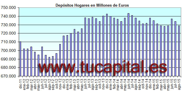 En el mes de agosto de 2015, los hogares y familias retiraron otros 5.000 millones de euros a los depósitos bancarios. En el mes de julio ya retiraron otros 3.000 millones de euros.