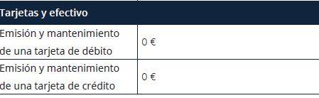 El banco no indica, pero imaginamos que la de crédito tiene coste.