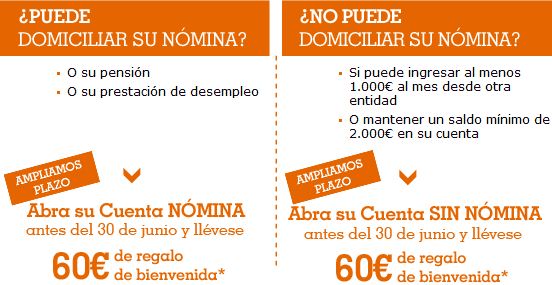 Últimos días de la campaña nómina de ING con regalo de 60 euros de bienve...