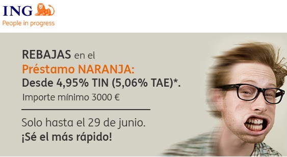 ING rebaja el coste de su Préstamo NARANJA hasta el 4,95% TIN, 1 punto porcentual menos de lo habitual, a determinados clientes.