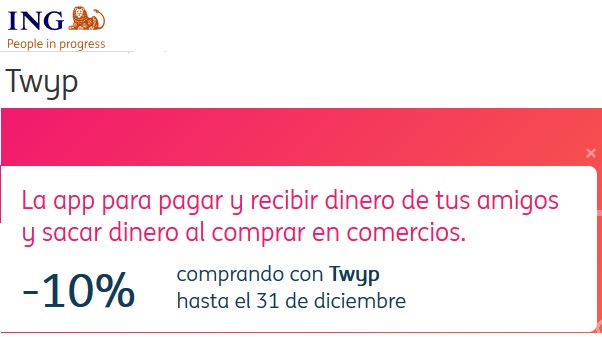 ING te devolverá el 10% del importe de la compra en los pagos realizados con Twyp en los establecimientos adheridos hasta el 31 de diciembre de 2017.