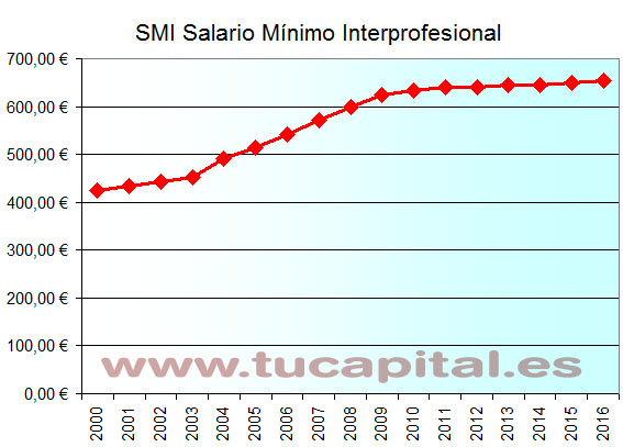 El Gobierno ya en funciones ha propuesto subir el SMI (Salario Mínimo Interprofesional) para el 2016 en un 1%, hasta los 655,08 euros mensuales (14 pagas), y seguramente sea la cifra definitiva.
