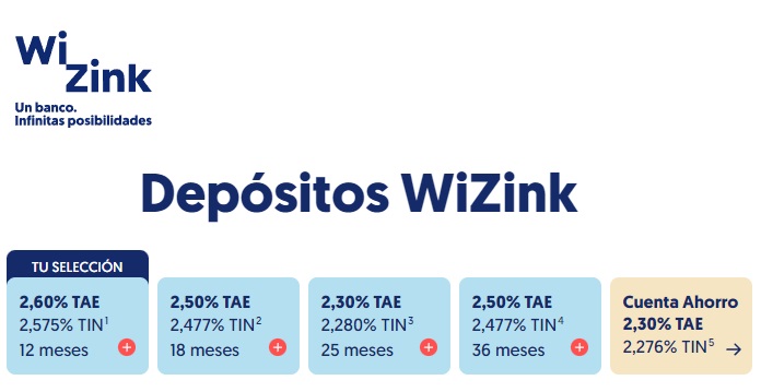 Se tratan de sus plazos fijos a 6 y 24 meses de plazo, desde 1,9% TAE hasta el 2,3% TAE; y desde el 2,5% TAE hasta el 2,8% TAE respectivamente.