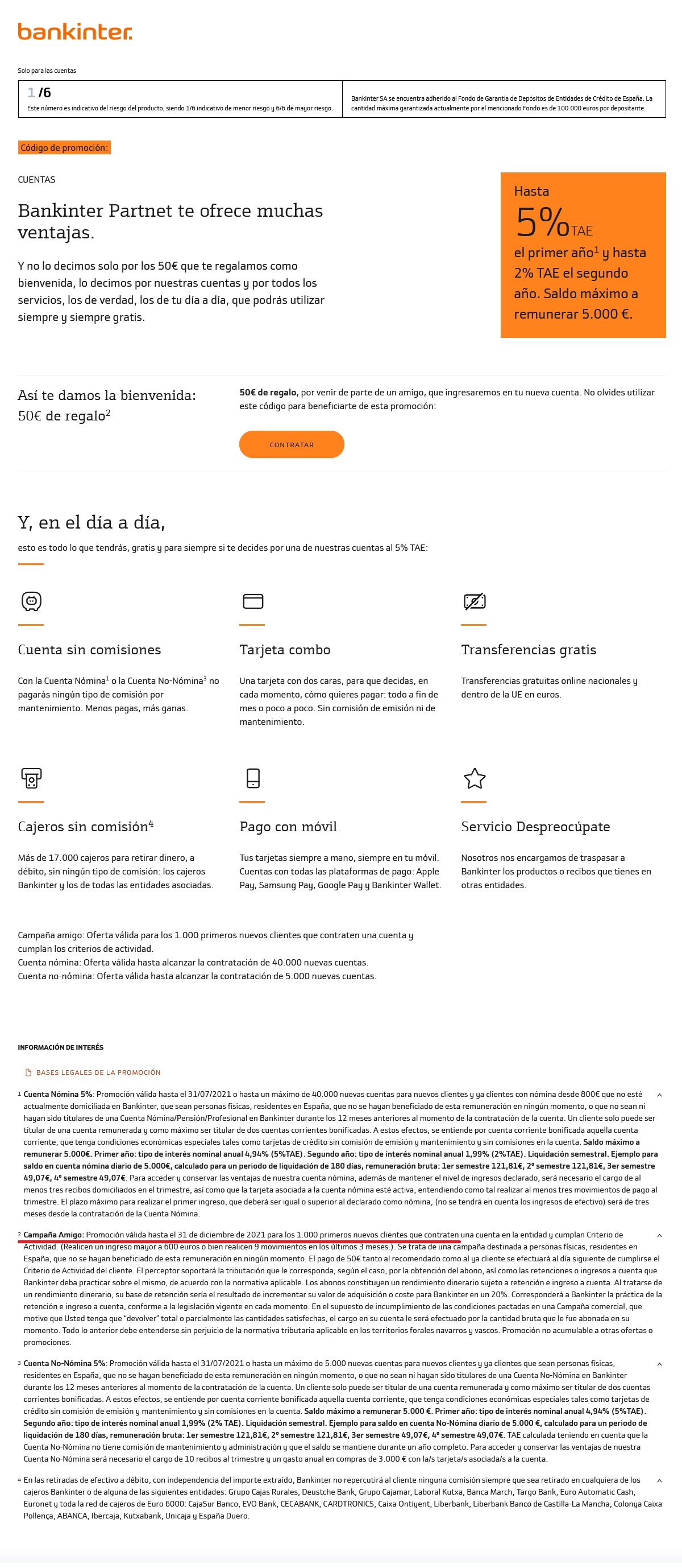 Yo hablando con los del banco me dicen que no está activa, y estoy revisando y está promoción es para Bankinter partnet.
