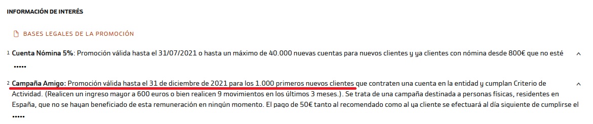 En cualquier caso, a fecha de hoy el Plan Amigo de Bankinter estaría en vigor, salvo que haya cubierto ya los 1.000 nuevos clientes.