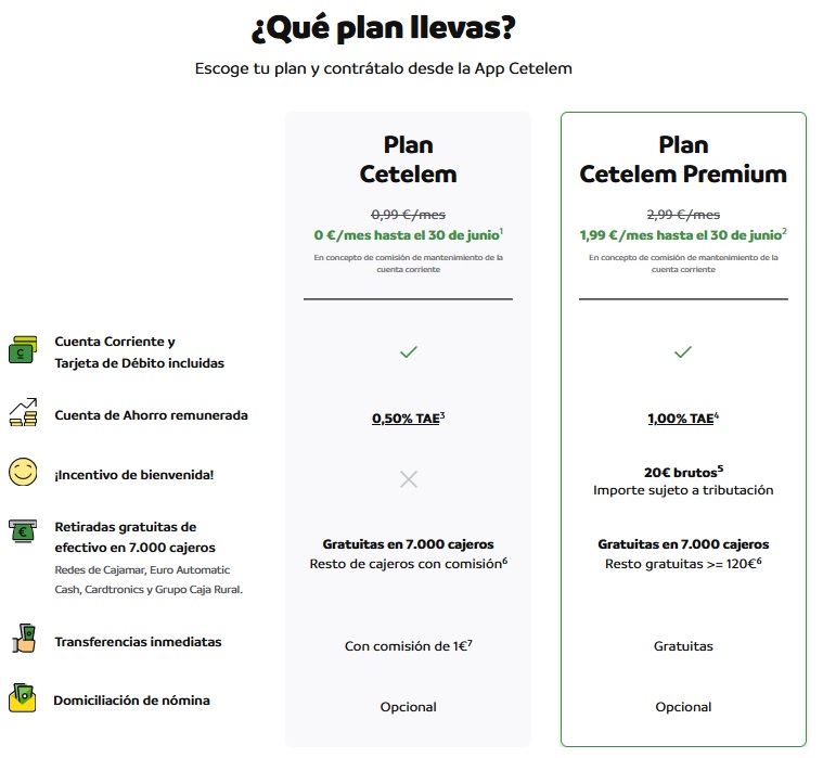 De hecho, el propio Cetelem comercializa la misma cuenta y con las mismas 2 modalidades: 0,5% TAE y 1% TAE, pero lo malo es que cobra comisiones mensuales de 0,99€ y 2,99€ respectivamente.