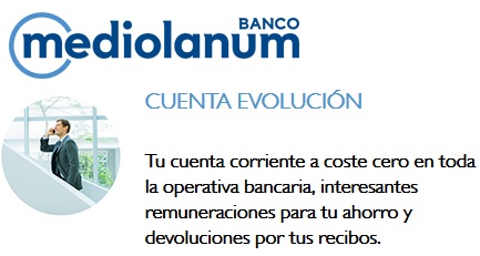 Banco Mediolanum al inicio del mes de julio lazó la Cuenta Evolución, una cuenta remunerada de hasta 1,4% TAE por tiempo indefinido, devuelve el 1% de tus recibos domiciliados y además es sin comisiones.