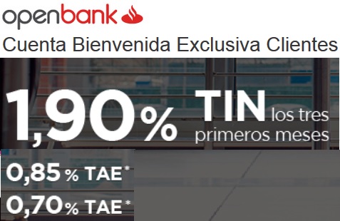 Hola! Soy cliente de Openbank y he llamado para interesarme por el producto al 1,90% a 3 meses, sin haber recibido comunicación previa y me han ratificado que es solamente para BIENVENIDA A NO CLIENTES y me han ofrecido la e-cuenta con nómina al 0,50% o depósito al 0,60%