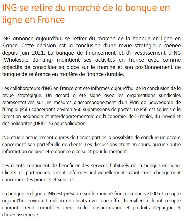ING lleva en Francia desde el año 2000 como banco online y que tiene actualmente alrededor de 1 millón de clientes.