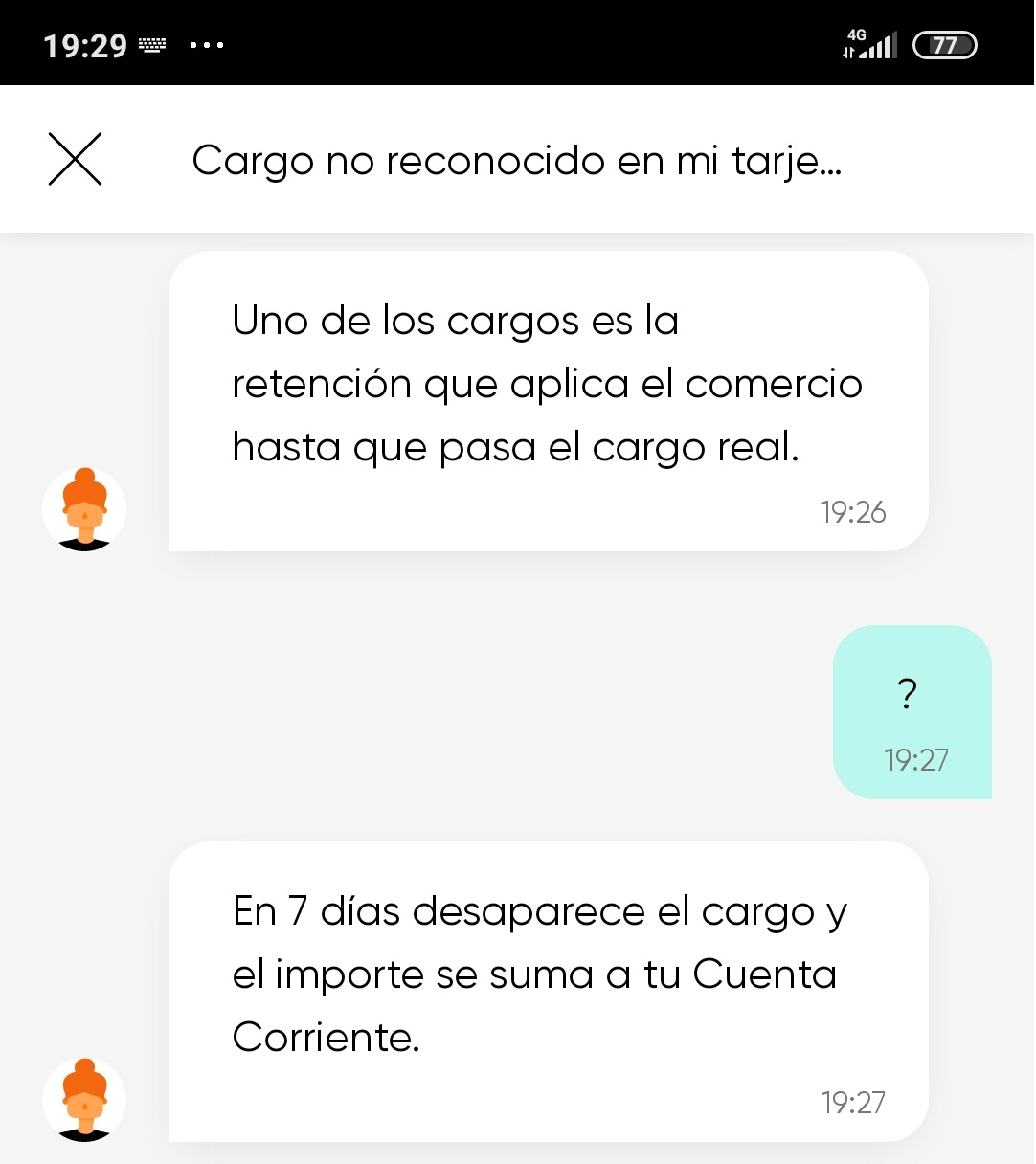 Además, tarda 7 días en hacer desaparecer uno de los 2 cargos, para en ese momento devolverte tu dinero a tu cuenta corriente. Vamos que te secuestra durante 1 semana tu dinero.