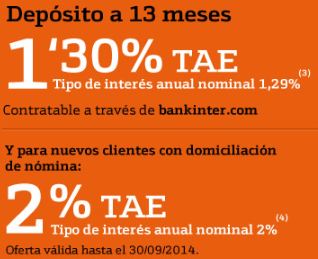 Bankinter amplia el plazo de contratación de su cuenta nómina al 5% TAE por 1 mes más, hasta el 31 de octubre de 2014.