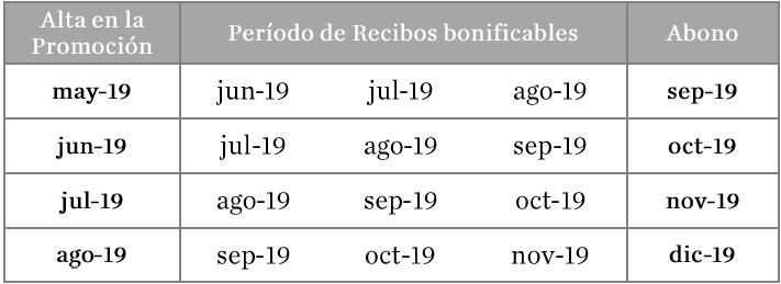 El banco te bonifica los recibos de 3 meses siguientes al mes de alta en la promoción, así, por ejemplo, si te acoges a la promoción ahora en el mes de mayo, te bonificación los meses de junio, julio y agosto.
