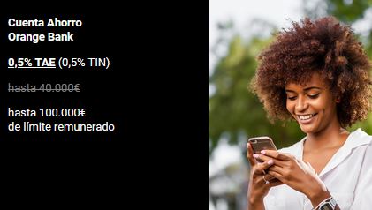 Orange Bank remunerará a partir de mañana, día 1 de julio de 2022, al 0,5% TAE, lo mismo que ahora, pero hasta 100.000€ de máximo.