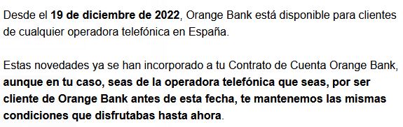 No sé si respetará a aquellos clientes que abrieron cuenta con número de teléfono Orange y luego se cambiaron de operadora pero transcribo condiciones del contrato que ponen en duda lo que en el foro se indica: