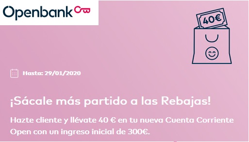 Openbank con motivo de las rebajas, ofrece 40€ netos en efectivo a los nuevos clientes que abran una cuenta Corriente Open y realice un ingreso de 300€.