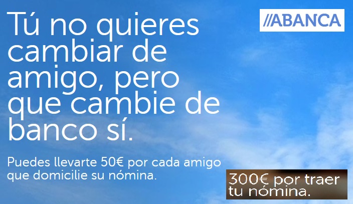 Código promocional de ABANCA: 414614. Domiciliando nómina 300 €.