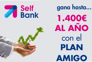 Self Bank anuncia que los clientes pueden ganar hasta 1.400€ al año con su Plan Amigo. ¿Cómo? Ayudando al banco a captar clientes para que contraten diferentes productos del banco.