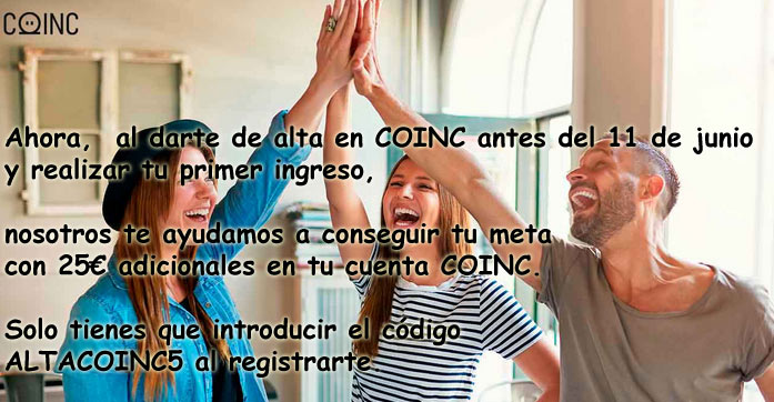 COINC ofrece hasta el 11 de Junio de 2017 25 euros en efectivo de bienvenida a los nuevos clientes que abran una cuenta en la entidad.