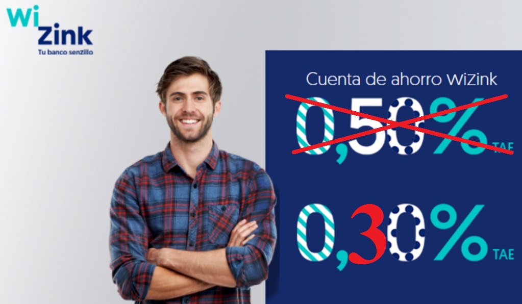 Wizink rebaja la rentabilidad de su Cuenta Ahorro desde el 0,5% TAE hasta el 0,3% TAE a partir del día 1 de julio de 2018, según un comunicado de la entidad a sus clientes.