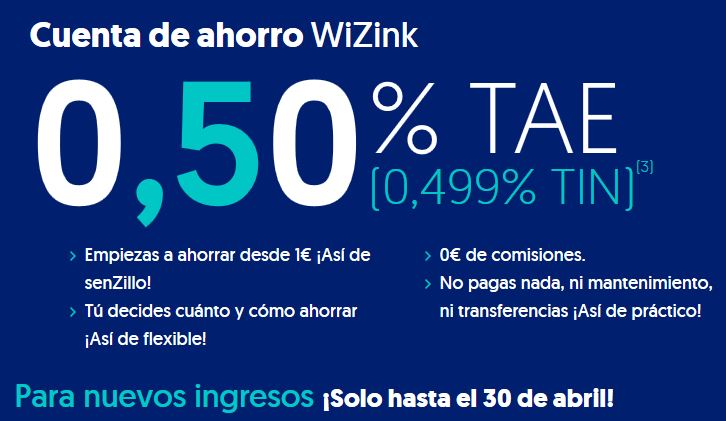 Wizink ha subido también la rentabilidad de su Cuenta Ahorro, desde el 0,1% TAE hasta el 0,5% TAE, y como figura en su oferta sólo para nuevos ingresos.