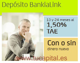 Bankia también ha relizado los mismos cambios sobre su depósito Fácil, hasta el 1,5% TAE, y su depósito creciente a 36 meses, que ahora lo ofrece al 1,25% TAE.