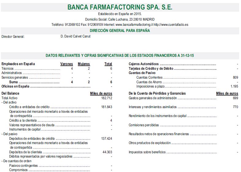 Cuenta Facto, la Banca Online de Banca Farmafactoring, que fue lazando el verano de 2015, captó durante ese año cerca de un millar de cuentas corrientes y de depósitos bancarios según datos de AEB.