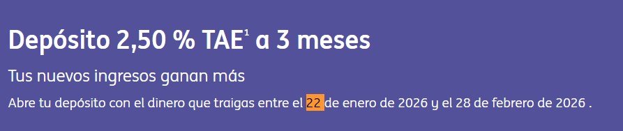 Si ya eres clientes, puedes acceder a un depósito similar siempre lleves dinero nuevo al banco con respecto a 22 de enero de 2026. La rentabilidad es ligeramente inferior: