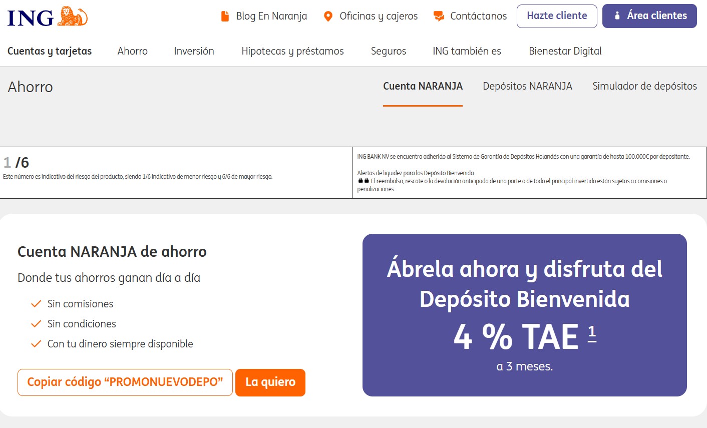 Se trata de un producto para nuevos clientes que abran la Cuenta Naranja utilizando el código promocional «PROMONUEVODEPO«.