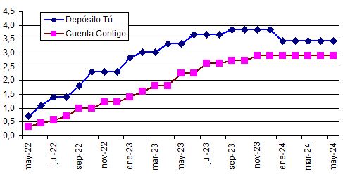 Por otro lado, su cuenta de ahorro aún nunca ha sufrido un recorte. Su tipo actual se fijó en el 2,89% TAE en el mes de noviembre de 2023.