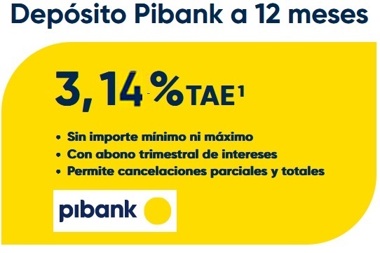 Pibank seguirá ofreciendo su depósito a 12 meses al 3,14% TAE hasta el 31 de mayo de 2024.