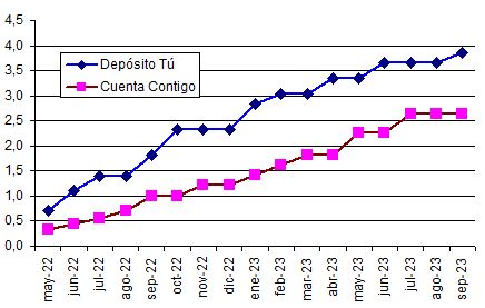 La Cuenta Contigo sigue al 2,63% TAE. Lleva vigente este tipo de interés desde el mes de junio; sin embargo, este producto sigue siendo el más interesante.