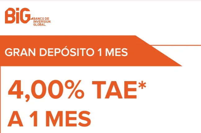 Banco BIG lleva sin realizar cambios sobre sus productos de ahorro desde el mes de noviembre, cuando recortó el depósito nuevo capital a 3 meses de plazo desde el 2,75% TAE hasta el 2,50% TAE.