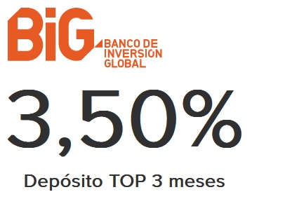 Banco BIG baja la rentabilidad de sus 2 depósitos para nuevos clientes, los denominados Gran Depósito, desde el 4% TAE hasta el 3,75% TAE el de 3 meses de plazo y desde el 3,6% TAE hasta el 3,25% TAE el de 6 meses de plazo.