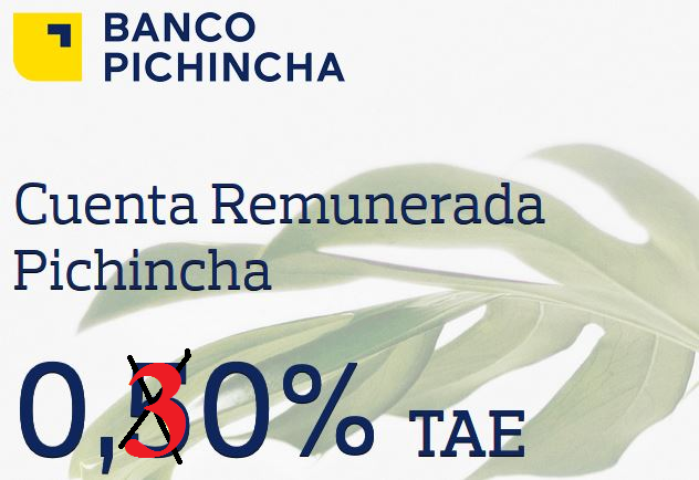 El pasado 31 de enero publicamos la noticia de que el Pichincha bajará la rentabilidad de su Cuenta Remunerada hasta el 0,3% TAE a partir del día 6 de abril.