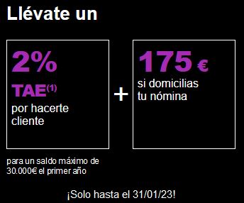 Seguirá dando un 2,5% TAE en su cuenta Online sin condiciones y sin comisiones, y si además domicilias una nómina, te bonifica con 200€ netos en efectivo.
