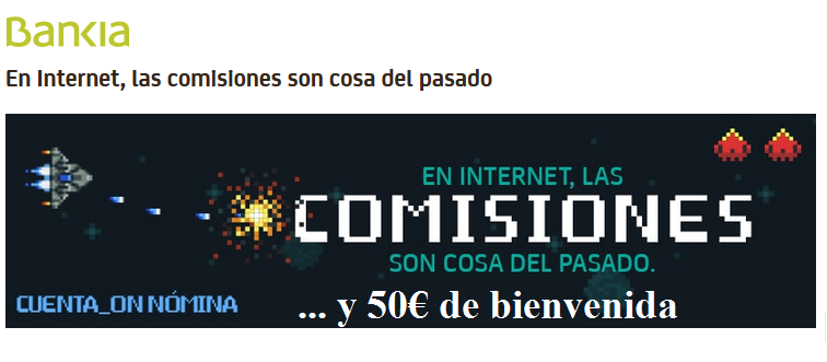Bankia ofrece a los primeros 8.000 clientes que abra su Cuenta On Nómina a través de Internet o App Móvil, un vale de 50€ canjeable en comercios como Amazon, Media Mark, Sprinfield, Woman Secret, Repsol o Decathlon.