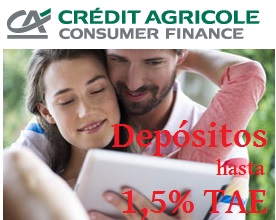 Crédit Agricole Consumer Finance, una entidad de crédito francesa filial del grupo bancario francés Crédit Agricole, baja la rentabilidad en un 0,1 puntos porcentuales todos sus depósitos, ofreciendo como máximo ahora hasta un 1,6% TAE y bajo el FGD Francés.