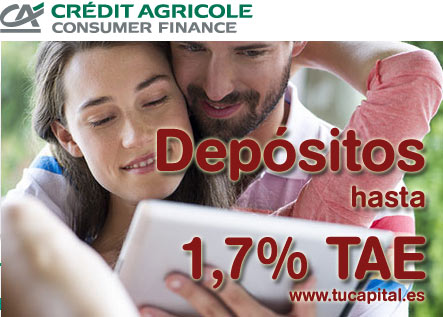 Crédit Agricole Consumer Finance (CACF), una entidad de crédito francesa filial del grupo bancario francés Crédit Agricole, sigue ofreciendo sus depósitos de hasta 1,35% TAE, rentabilidad fijada desde que el pasado mes de noviembre de 2016.
